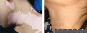 主诉:患者前额大面积白斑,突发白斑两个月,